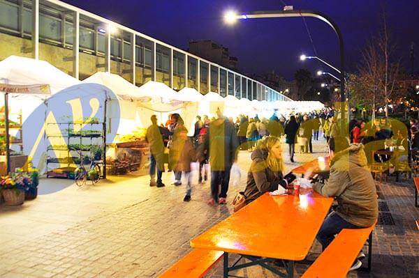 Ferias gastronómicas de fin de semana, donde cada expositor tiene una carpa personalizada para marcar su espacio.